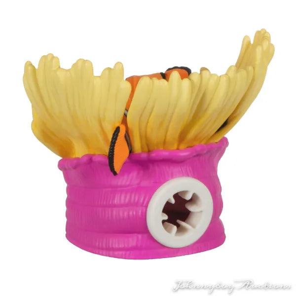 Celebrate the 20th anniversary of the beloved Disney/Pixar movie "Finding Nemo." The sweet decoration featuring father and son clownfish Marlin and Nemo in their sea anemone home makes a perfect gift between a parent and child. Insert the bulb of a standard miniature light string through the rubber grommet on the ornament to create a special lighting effect.
